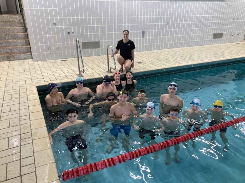 Dies gibt einen großen Entwicklungsschub. Mit einer GoPro drehten wir Über- und Unterwasser-aufnahmen, die im öffentlichen Röthelheimbad nicht möglich wären, und analysierten die Technik eines jeden Einzelnen dann ausführlich im Seminarraum. Abgerundet mit einer Einheit Rumpf-stabilität in der Turnhalle und einer Laufeinheit draußen auf der Finnenbahn waren 8 Stunden Sport schon sehr anstrengend, einige der 26 Teilnehmer:innen fanden aber dennoch Zeit und Lust zum Fußballspielen, Klettern, Biathlon oder Saltospringen auf der Akro-Bahn. So fühlen wir uns sehr gut vorbereitet für die Wettkämpfe ab Mai. Vielen Dank an Herrn Köstermeyer für die Bereitstellung von Schwimmbad und Sporthalle und an Sofia und Pablo Warter für die Trainertätigkeit!